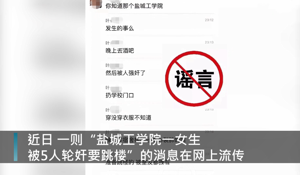 近日,一则“盐城工学院一女生被5人轮奸,要跳楼”的消息在网上流传,并配有一名女学生在某宿舍楼欲跳楼视频,造成恶劣的社会影响。