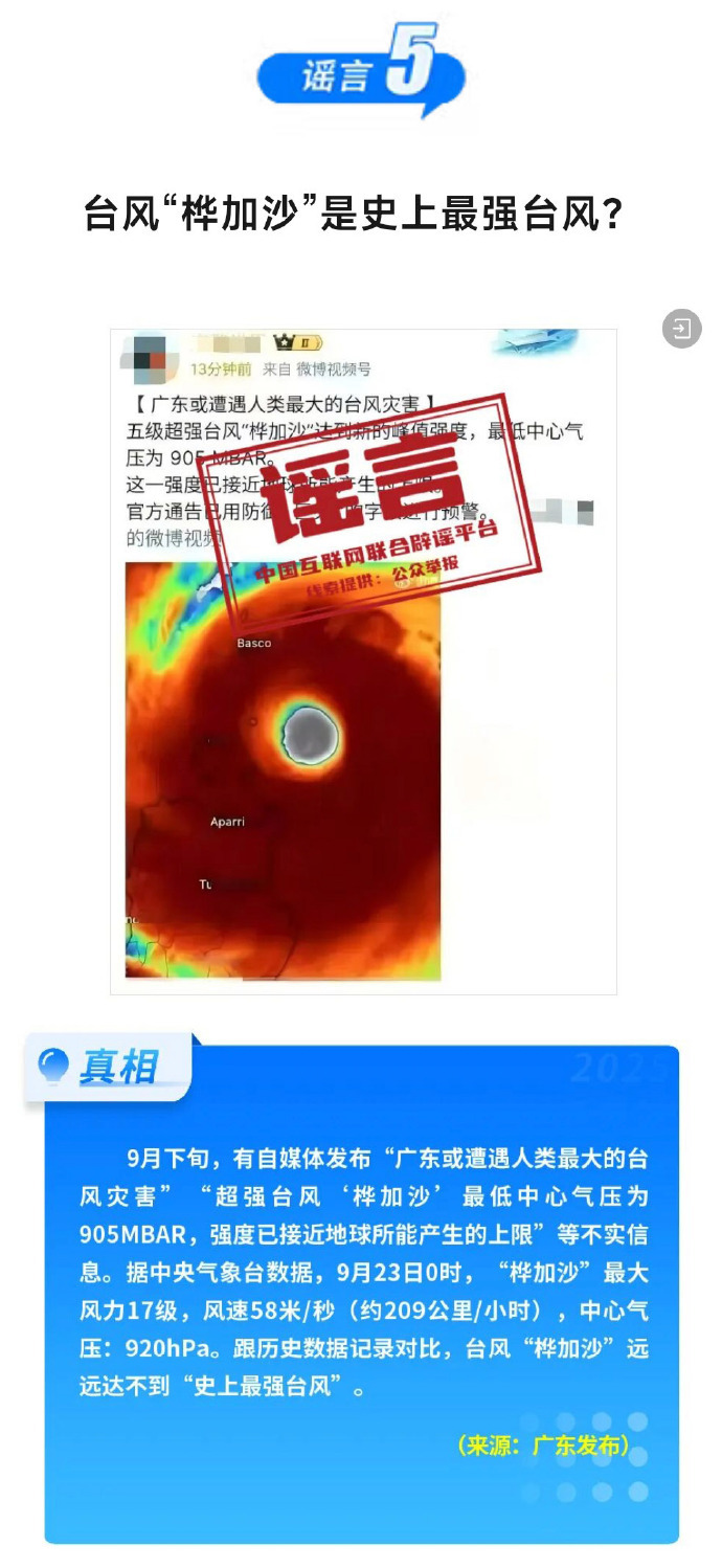 9月,涉汛、涉灾害类谣言多发。有自媒体发布“广东或遭遇人类最大台风灾害”的信息,夸大事实、制造恐慌,据中央气象台数据,“桦加沙”远远达不到“史上最强台风”等级。随着“桦加沙”台风逼近广东沿海地区,社交平台上出现多张所谓“深交所门前牛雕塑被拴”“车辆被五花大绑”的图片,均被证实系AI合成。河南发生区域性暴雨天气期间,多个账号发布“郑州9月16日遭大暴雨,比7.20还厉害”的内容,实为用AI技术拼凑、剪辑生成的虚假视频。