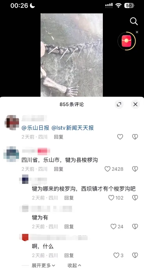 最近,一条关于“四川省乐山市犍为县芭沟镇发现完整恐龙化石”的网络消息在社交平台持续发酵,不少网友纷纷向当地媒体求证:“这个岩壁骨架是真化石吗?”“要不要去打卡‘侏罗纪遗迹’?”