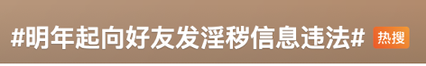 记者发现,与此同时,“明年起向好友发送不雅照片、视频违法”“明年起传播淫秽信息违法” 等词条被大量转发,引发网友热烈讨论,其中,不少内容存在误读和泛读。