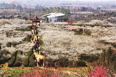 目前,南京已经进入赏梅的最佳时间,外出踏青赏花的人越来越多。溧水的梅花山也迎来了一拨又一拨前来踏青赏梅的市民。走进景区,盛开的梅花或整齐地排成一排,或两三朵紧簇在一起,点点清雅、美丽动人。花瓣在风中轻轻摇曳,诗情画意跃然眼前:梅花的清香沁人心脾,艳若桃李的红色,冰肌玉骨的白色,清新脱俗的淡绿,共同呈现出一幅“梅花醉如泥”的花海美景。让久居热闹都市的游人彻底忘记了平日工作的压力,倍感轻松惬意。