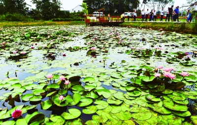 昨天,江宁区秣陵街道元山社区观音殿莲花盛开,吸引了众多游客。