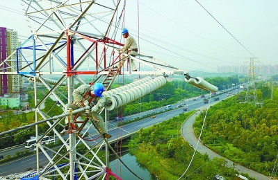 近日,南京供电公司电运检室带电班对西环网220千伏的1号、2号塔进行带电检修。近期,市供电部门强化了对设备的维护检修,保障夏季用电高峰供电。 黄忠诚 徐琦摄