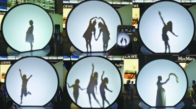 传统“七夕”节将至,昨晚,新街口德基广场前一个月亮造型的投影仪亮相,市民站在投影仪前摆出各种创意的造型,用这种时尚的方式迎接传统节日。 本报记者 崔晓摄