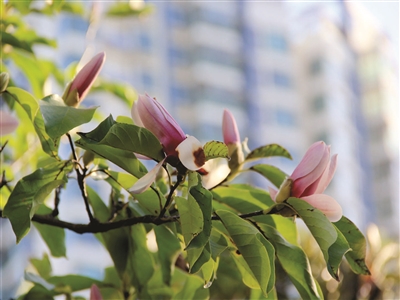 记者前往现场看到,这株紫玉兰高约6米,树干直径约17厘米,在翠绿枝叶间,一朵朵紫色花瓣挂在枝头,走到树下还能闻到淡淡的清香味。一位市民告诉记者,紫玉兰花期通常在3-4月,现在正是紫玉兰结果的时候,没想到在秋季又再度开花。