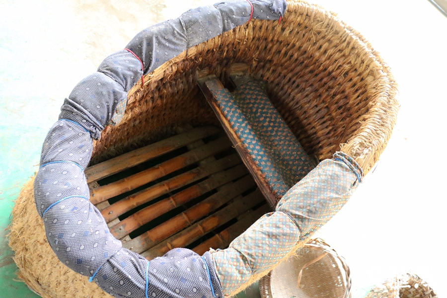 据村上老一辈人讲,这种“草窝窝”别看编织粗糙简单,但御寒效果还是不错的。使用的时候,脚板之下放置火灰盆,冬天的时候,“草窝”往家门口一放,老人小孩坐在里面双脚放在火盆上,火盆里偶尔还埋上俩山芋。边烤山芋边晒太阳,自然是十分惬意,而有时候农家妇女坐里面打打毛线,拉拉家常,这一个冬天就这样过来了!