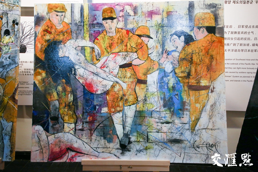 帕赫说,在陈列馆的一个月创作时间里,他不敢去见“慰安妇”幸存者,怕看到她们的眼泪。然而每天看到墙上‘慰安妇’的图片,看到她们痛苦的表情,心里仍然感觉很沉重,很悲伤。那段时间,帕赫都不会笑了。一到陈列馆,就会有一种压抑感,创作时也会不自觉的流泪。所以,帕赫几乎是一气呵成画了这几幅画,就是想向世界展示二战期间,日军在中国犯下的性暴力罪行。