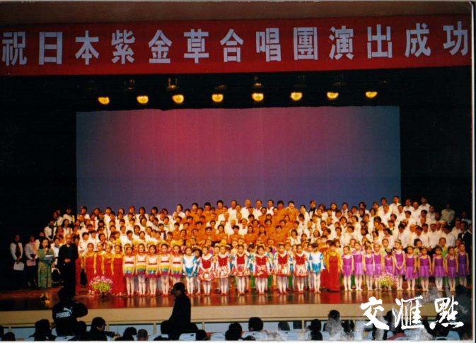 1999年,在大门高子和相关人士的努力下,紫金草合唱团在东京都足立区的一次演出中首次唱响《紫金草的故事》。团员们唱得无比投入,深情舒缓的歌声感染了在场的每一个人,在日本也引起了强烈反响。
