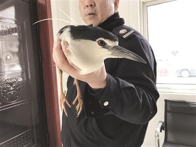 民警接收受伤的夜鹭。