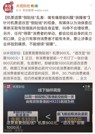 近日,机票退改签乱收费被央视曝光。央视指出,部分平台高额的退改签收费令用户们叫苦不迭,尤其是退票“倒贴钱”乱象,唯有痛感才能叫醒“装睡者”平台。