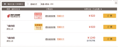 打开飞猪官网,以北京到上海机票为例,选择航班可发现,页面上除了商家以及优惠之外,其它再无任何附加项,甚至连误导消费的提示也丝毫没有,给用户的感觉极其清爽而明了。而目前在某些平台上搜索机票时仍能看到,有些用小字标注了加价抵券的说明,如果消费者不细心留意,很有可能会直接点击了预订。