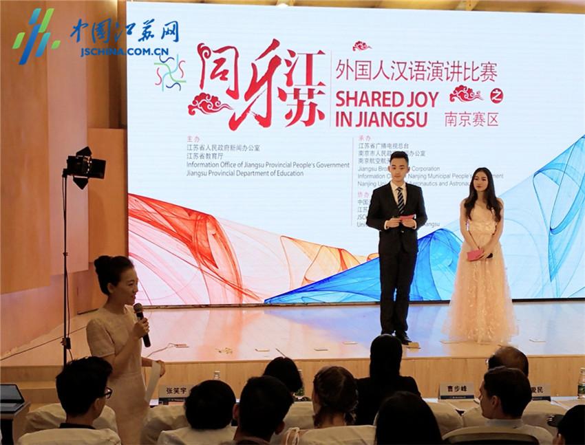 中国江苏网6月6日讯 今天下午,2018“同乐江苏”外国人汉语演讲比赛南京赛区的比赛在南京航空航天大学擂响战鼓。来自澳大利亚、尼泊尔、俄罗斯、美国、泰国等17个国家和地区的23名在华留学生,纷纷拿出看家本领,用流利的普通话和对中国文化的深刻感悟,感染着现场的每一位观众。
