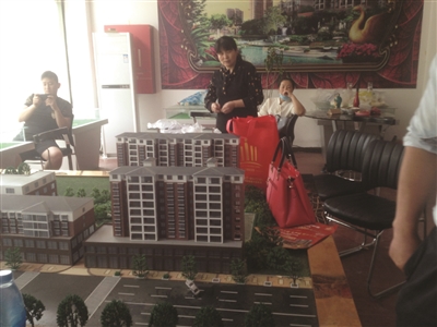 在宿迁市洋河新区南大街一个新开发的小区售楼部里,楼盘的模型还摆在沙盘里,但售楼人员早已不见了踪影,里面摆放着两张床,还有煤气灶、锅碗等生活用品,49岁的农妇胡敏已在这里安家了近半年。她说,老家的房子被拆迁了,全款购买的房子逾期迟迟不能交付,只好住到这个新开发小区的售楼部里。