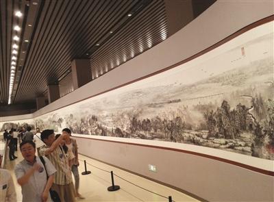 中国江苏网讯 7月1日,由50多位国内著名的山水画家,走遍长江沿岸10多个省市实地采风,历时一年数易其稿创作完成的长200米、高1.5米的巨幅长卷《长江万里图》,在位于江阴新桥镇的“海澜美术馆”展出,献礼党的生日。