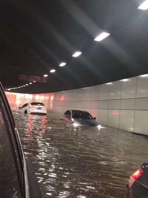 交汇点讯 接网友爆料,江东北路侵华日军南京大屠杀遇难者同胞纪念馆附近水管爆裂,汉中门和江东北路交界口路面和隧道已淹,不清楚波及范围,建议提前避让。多辆小轿车抛锚水中央,有驾驶员爬到了车顶,水位已没过整个车轮。
