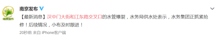 南京水务集团相关负责人表示,管线部门正在全力抢修。