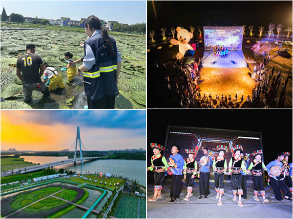 深化网格治理固本强基作用,精准采集民意,充分挖掘村庄的多元功能和价值,助推全村产业转型升级,实现资源利用效益最大化。谢埭荡村采取“生态+”“互联网+”等方式,发展无公害渔业及休闲农业发展体验式乡村休闲观光旅游,打造乡村休闲度假综合体。引进长江三鲜养殖项目、澳洲淡水小龙虾种业养殖项目及稻田甲鱼项目,加快农业农村重大项目建设,打造特色农业全产业链。推出“大秀云集 谢荡水韵”露营基地并举办了乡村振兴品牌节、宛山湖梨花节、云南彝族火把节、“英才之夜”夏日歌会等活动,将特色文化、水乡情节深植于心,感受独具特色的乡土记忆。