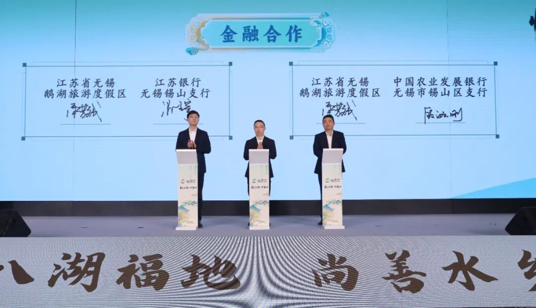 现场,无锡鹅湖旅游度假区文旅推介官正式亮相;来自鹅湖本土的9家优质文旅单位正式组建旅游生态联盟;中国农业发展银行无锡市锡山区支行、江苏银行无锡锡山支行与鹅湖旅游度假区签订金融合作框架协议,共同探索政银协同赋能文旅高质量发展的新路径。