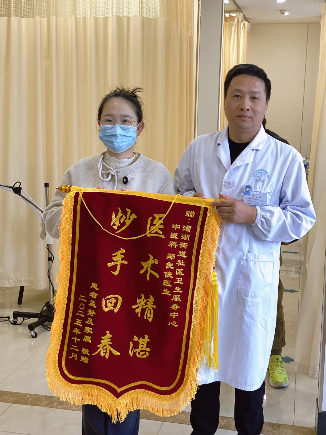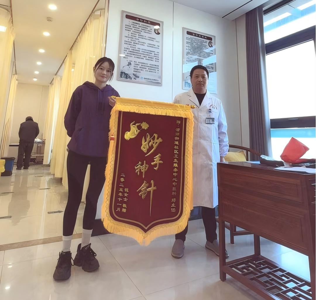 另一位钱女士则是多年腰椎间盘突出患者,久坐、久站都会引发剧烈腰痛,吃西药、贴膏药只能暂时缓解。郑医生为她精准制定针灸结合理疗的方案,通过循序渐进的中医调理,短短两周,钱女士的腰部功能显著改善。“现在我能自己弯腰捡东西了,生活质量大不一样!”她送来的“妙手神针”锦旗,不仅是对医生的认可,更是对社区中医药服务的信任:“没想到在家门口,就能解决困扰多年的大问题。”