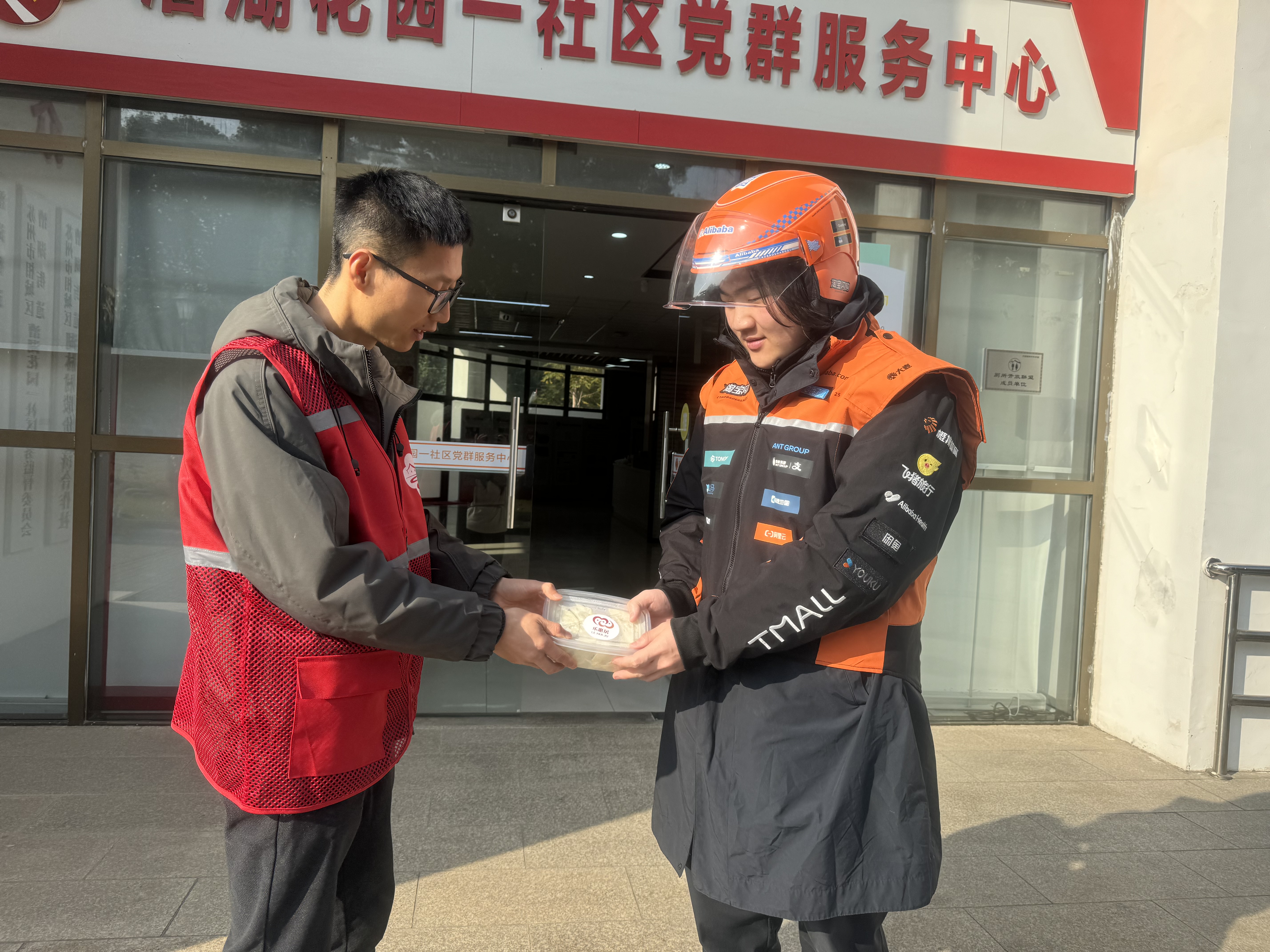 “师傅,冬至快乐!快尝尝社区刚包好的热饺子!”活动现场最暖心的画面,莫过于工作人员为新就业群体送饺子的场景。他们带着刚出锅的饺子,第一时间奔赴社区周边外卖取餐点,将温热的饺子递到外卖小哥手中。外卖骑手小张接过饺子,搓了搓冻得发红的手,趁热咬下一口,感动地说:“天天忙着跑单,早就忘了过节这回事,没想到社区专门惦记着我们,这饺子吃在嘴里,暖到心里头,再冷再累都值了!”