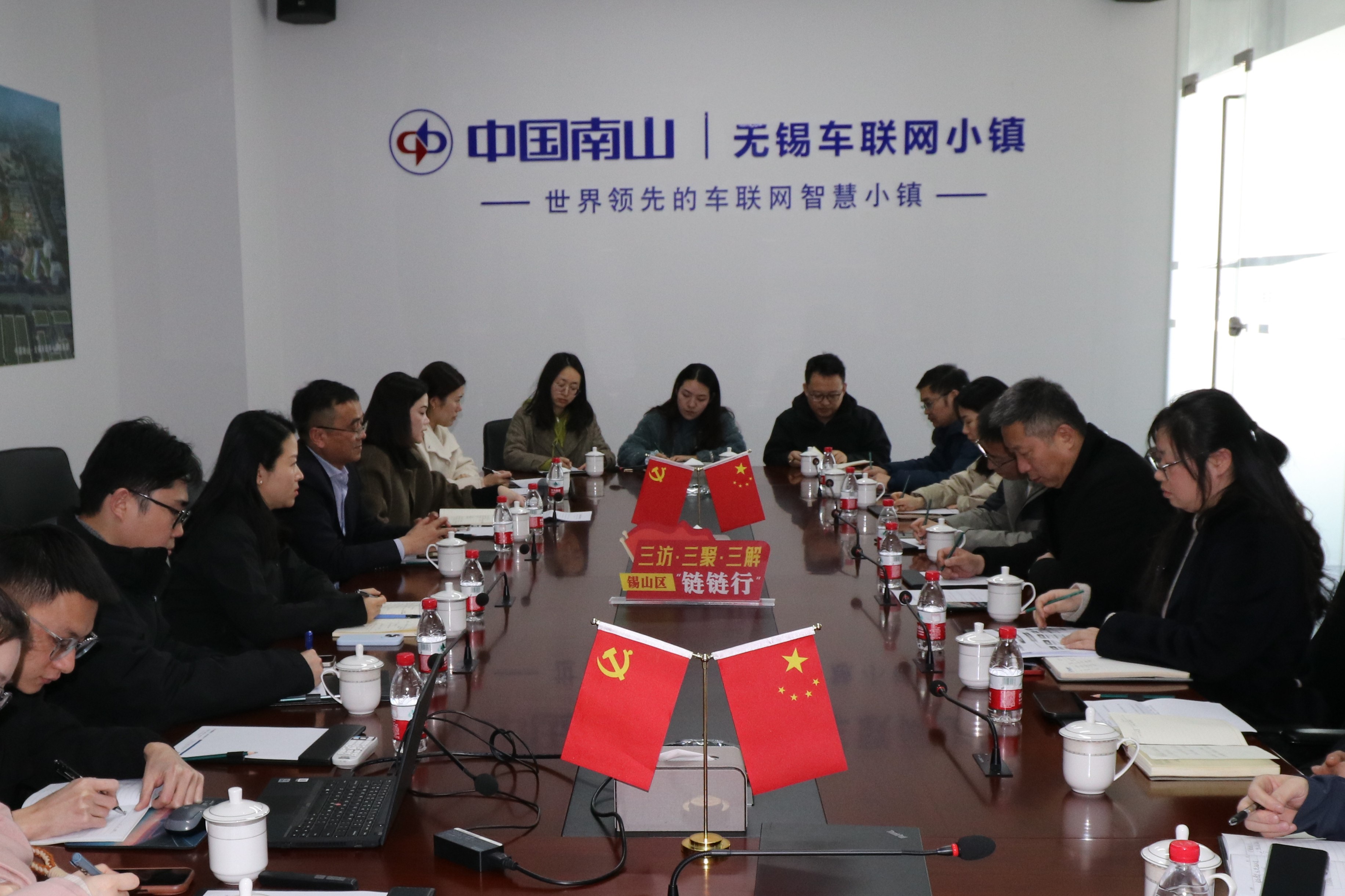 组织建在“链”上,筑牢融合发展堡垒。今年升级完成的车联网小镇展厅正式打造成为无锡车路云一体化创新运营中心,集运营指挥、创新展示、区域联动于一体,是城市级运营指挥中心、产研用成果展示中心和长三角融合联动中心,更成为了阵地共用、资源共享的党建“共享区”,为链上企业党组织和党员、职工提供组织生活、学习培训等服务。总投资10亿元的锡东智能车联产业园加速推进,将打造车联网全链条研发生产基地,为产业链聚合提供坚实支撑。