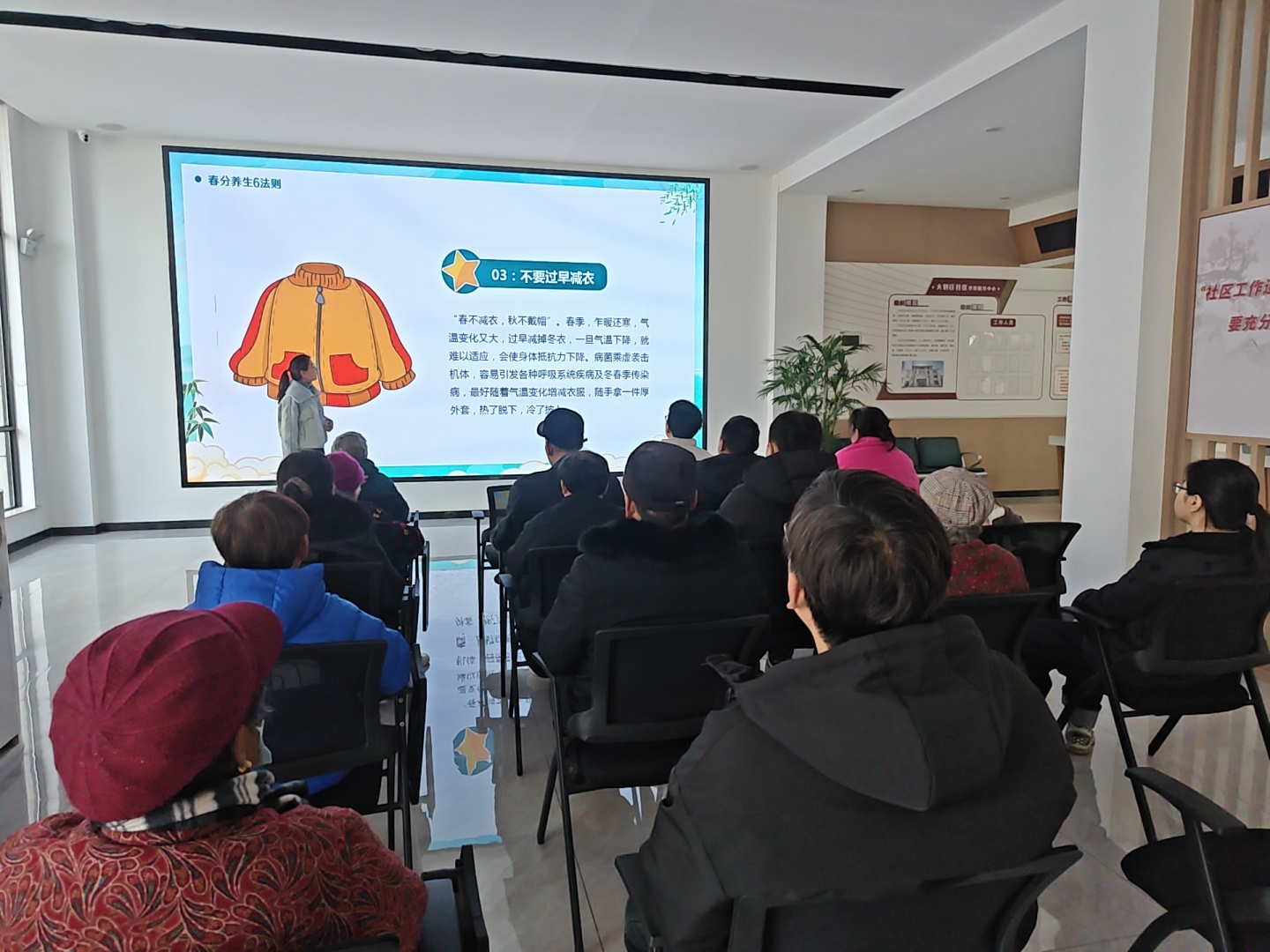 古语云:“春分者,阴阳相半也,故昼夜均而寒暑平。”在钟吾街道大刘庄社区,一场以“春分养生6法则”为核心内容的全民阅读分享会吸引了众多居民的参与。