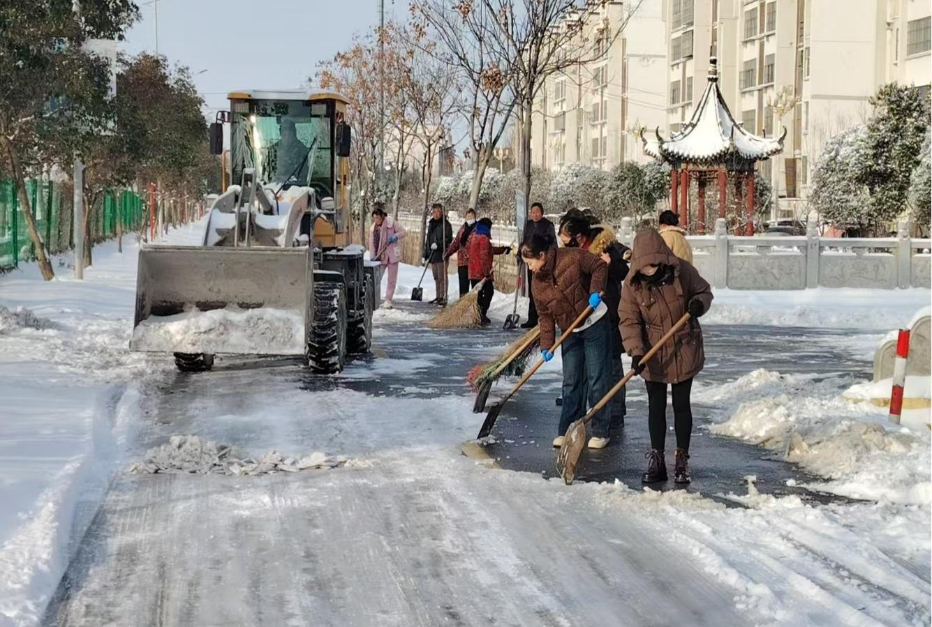 筑牢冰雪“安全线”,传递冬日温暖。石集乡党委、政府坚持“人民至上、生命至上”理念,以雪为令、闻雪而动,用责任与担当筑牢冬季安全防线。提前检修调试铲雪车,清点核查融雪工业盐、铁锹、扫帚等应急物资,储备融雪盐、手动除雪工具等,同时通过村广播、微信群、入户通知等方式,及时发布降雪预警、安全出行提示及防寒保暖知识,引导群众做好防范。组建由机关干部、村“两委”成员、党员志愿者、文明实践骨干组成的“冰雪守护志愿服务队”,采取“机械为主、人工为辅”的模式,到人行道、背街小巷、小区出入口等地开展除雪清障工作,用志愿红驱散冬日寒,以文明实践担当守护群众出行安全。