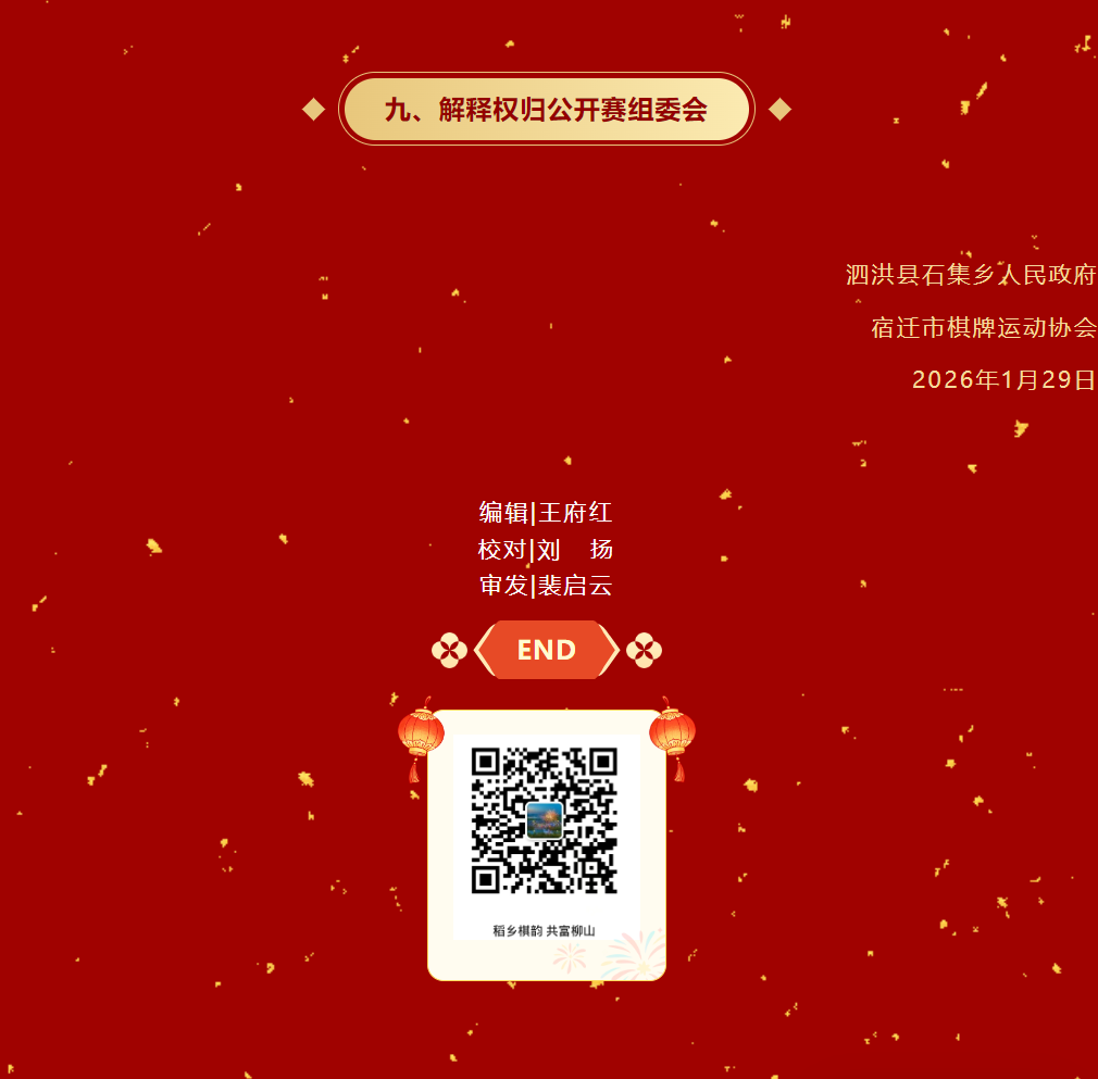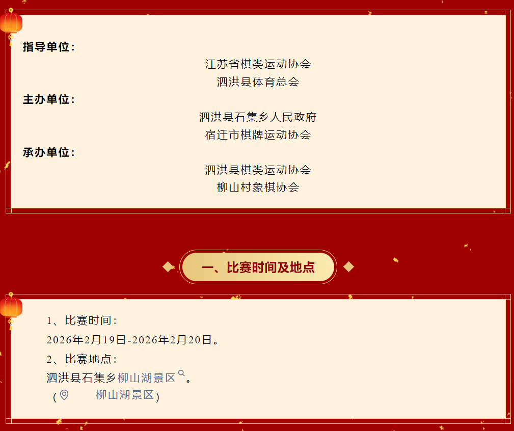 江苏省泗洪县石集乡柳山社区第43届“春节杯”中国象棋公开赛竞赛规程