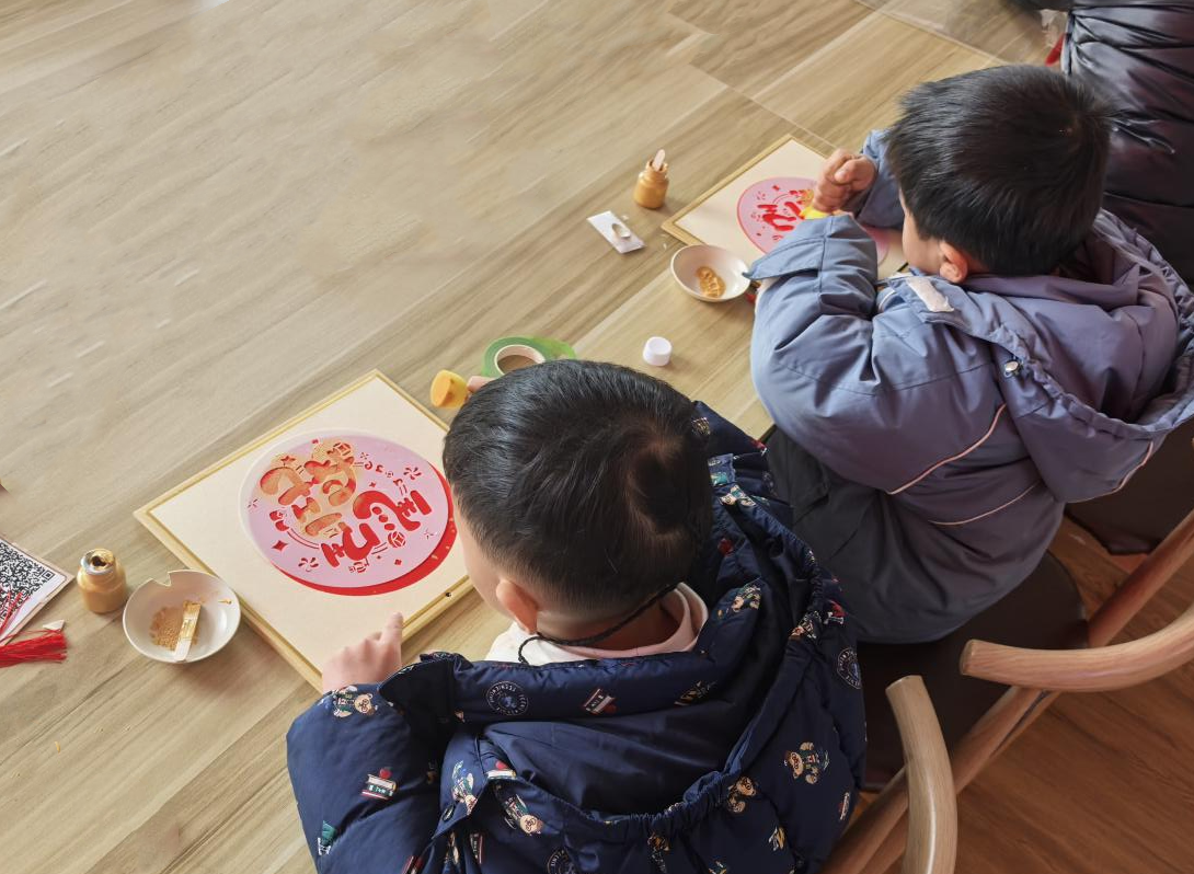 “小朋友们,你们知道吗?我们等会儿要玩的拓印,就是和一千多年前的唐朝人一样,亲手把漂亮的图案‘复制’下来。”志愿者一边介绍非遗知识,一边将拓印所需的红色宣纸、金色印泥、墨碟、海绵擦等材料分发给孩子们。在清晰演示完整步骤后,志愿者俯身至每个孩子身旁,耐心指导他们亲手尝试刷墨、拓印。“2026年是农历马年,我们制作这份红底金马的日历,寓意新的一年红红火火,一马当先。”志愿者讲解着生肖寓意,鼓励每位孩子在日历上记录自己的阅读时光,制定新年阅读计划,并祝福他们如画中骏马,奔向广阔前程。