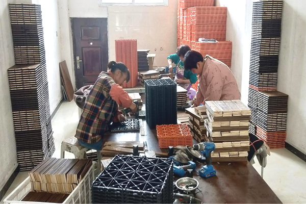 如果说顾家大酒店是一个从无到有的过程,那么泗洪县安逸实木制品厂就是一个从小到大、扎根扩枝的过程。泗洪县安逸实木制品厂是创业一条街第一家做电商的企业。2020年8月,经过多次了解考察,李雷雨夫妇在各大网络平台注册了碳化之家、爱逸家居等3家店铺,经营销售户外阳台防腐木地板、碳化木室内庭院露台花园防滑DIY地铺拼接地板等,年销售额在500万元左右。为进一步扩大经营销售规模、带动“家门口”就业,在政府的鼓励支持下,李雷雨夫妇注册了安逸实木营业执照,并在创业一条街租赁了150余平方米的门市,优先招聘附近居民从事DIY地铺拼接工作,由于操作简单、时间灵活、计件付费、收入可观等原因,吸引了附近众多留守妇女、老人前来应聘,带动了20余名群众就业。