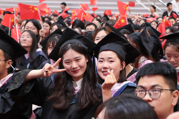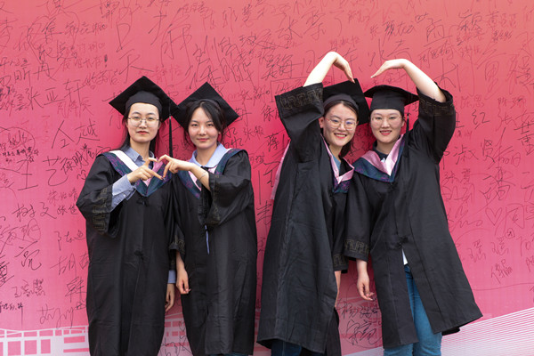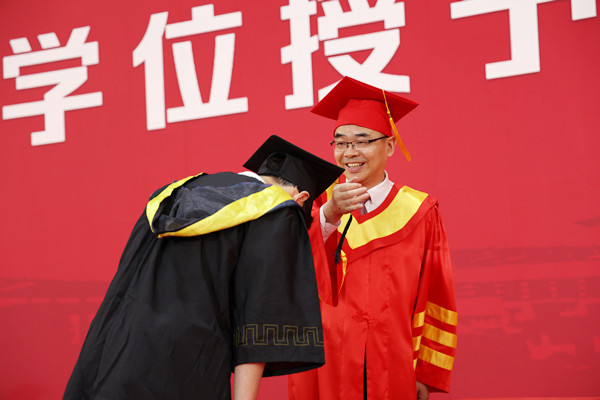 立德树人,润物无声;求学数载,恩情难忘。在今年的毕业典礼上,由辅导员、任课老师、行政人员、图书管理员、食堂和宿管阿姨、保安、医护人员带来的集体朗诵《这四年,我们陪你们一起上大学》感情真挚、动人心扉,毕业生代表现场为教职工代表献上了一束束饱含感恩之情的鲜花,将整场毕业典礼推向高潮。