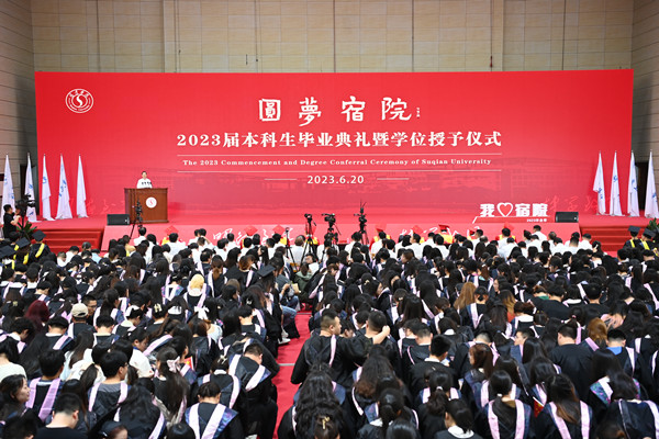宿迁学院党委副书记、校长潘志明深情寄语宿院学子,希望大家要志存高远,敢于筑梦。梦想有多大,舞台就有多大;梦想有多远,舞台就有多远。今后无论做什么事,从事什么职业,能够牢记“明德至善、博学致用”的校训,志存高远、敢于筑梦,与时代同向同行,和祖国同频共振,把个人梦想和自我价值实现与国家前途、民族命运、时代发展结合起来。合于天地,胸怀天下;合于祖国,视国犹家;合于人民,视人犹己;合于自己,知行合一。要拼搏奋斗,勇于追梦。奋斗是最美的姿态,奔跑是最美的剪影。在未来的人生道路上,希望同学们能够持续发扬“艰苦创业、改革创新、拼搏创优”的宿院“三创”精神,有梦就追、有路就闯,以“为有牺牲多壮志、敢教日月换新天”的奋斗豪情,擦亮青春底色,书写无悔华章。要坚定信念,勤于圆梦。在这个变幻莫测的时代,圆梦路上必定充满了各种艰辛和困难,很容易让人感到疲惫和挫败。希望同学们永远不要忘记出发时的梦想,把坚持作为一往无前的利器,在风雨兼程中开拓进取,在长风破浪中笑傲前行。圆学业顺利的梦,圆事业兴旺的梦,圆家庭幸福的梦,圆中华民族伟大复兴的梦。