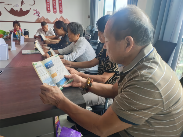 活动现场,志愿者向参与活动的居民发放阅读倡议书、推荐书籍,大家一起观看阅读推广宣传片。居民在农家书屋选取自己喜爱的书籍进行阅读,在阅读到自己喜爱的部分时还会一起分享讨论。从唐诗宋词到地理科普,从散文到故事会,居民纷纷分享着自己书中的“黄金屋”,谈论自己的阅读感受。