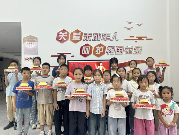刘洞社区则别出心裁地推出了“红色基因润童心 指尖筑梦颂祖国”主题实践活动。活动伊始,孩子们集体观看了《开国大典》珍贵历史影像,黑白画面震撼人心,让大家深刻感受到新中国成立的艰辛与伟大。随后的“拼筑我心中的天安门”3D拼图环节将活动推向高潮。孩子们小心翼翼地将零散部件组装成雄伟的模型,在动手协作中,不仅锻炼了观察与动手能力,更让红色的种子扎根心田,深切提升了国家认同感和民族自豪感。