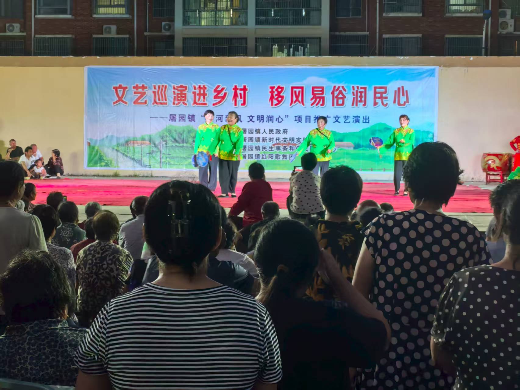 中国江苏网9月25日宿迁讯 “婚事简办减负担,古河人家新风尚;不要彩礼不收礼,日子红火甜如蜜……”近日,由宿迁市宿城区屠园镇红阳歌舞团与古河村新时代文明实践站联合编排的说唱节目《文明新风尚 古河幸福多》在古河村乡村大舞台上演,唤起观众共鸣共情。