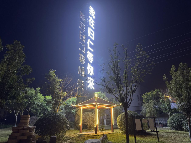 穿行于归仁镇,路口那座古朴的亭子静静立于秋光之中,仿佛在守候着每一位来往的行人;亭边,“我在归仁等你来”的灯牌泛着温柔的光,像是一句无声的邀约,轻轻拉开小镇深秋的画卷。园区里,爬藤月季依然顽强地绽放着最后的绚烂;仁义大街与宁富路两侧,经过精心设计的花坛呈现出丰富的季相变化,不同色系的植物错落有致地交织出秋日的斑斓。粒粒香米业的口袋花园中,金黄的落叶为休闲场地铺就天然地毯,群众沐浴着暖阳,或闲话家常,或伴着孩童嬉戏;国道旁的拱形花门虽不复盛夏时的繁花似锦,却别有一番沉静韵味。更令人惊喜的是,道路两旁树干上栩栩如生的松鼠彩绘,与飘落的秋叶相映成趣,为这静谧小镇平添了几分童话般的诗意。
