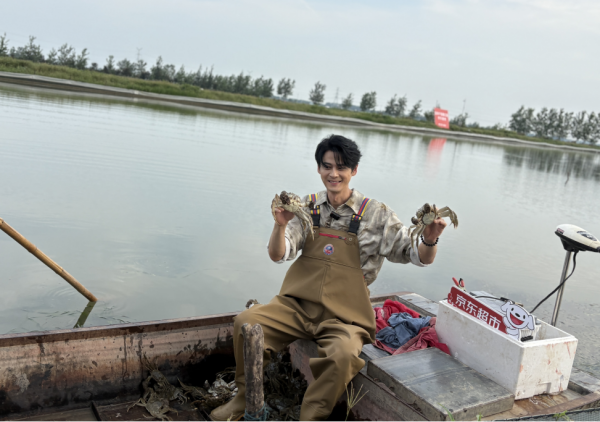 今年京东超市在宿迁承包了1600亩霸王蟹基地,还组建了专业的质量检测团队深入核心产区驻场指导,从喂食、环境监测到清塘晒土,每一步都得按标准来。郭品超即使外出拍戏也不用担心。