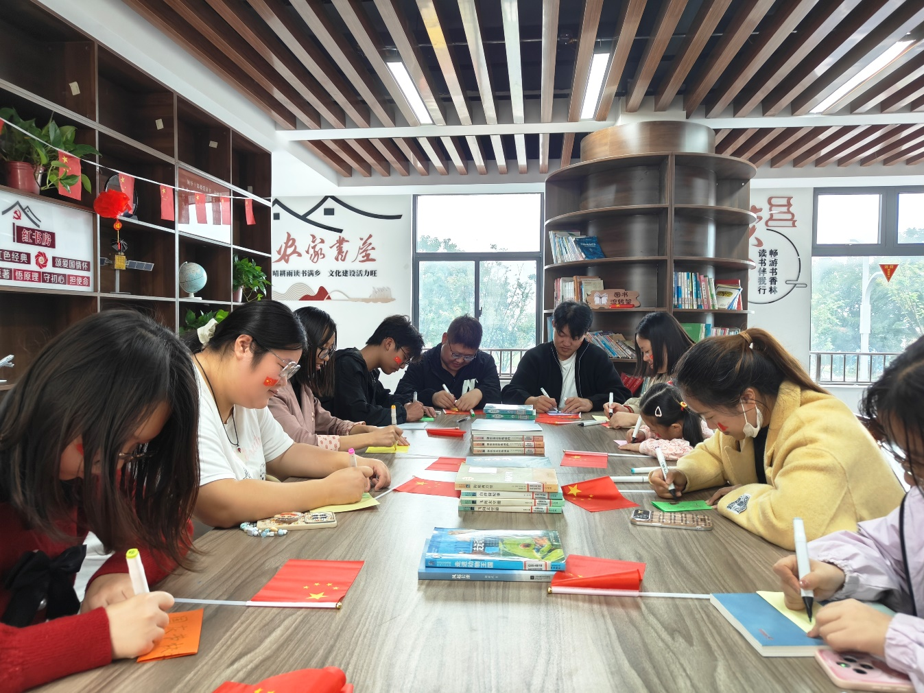 长条书桌上整齐摆放着五颜六色的彩色卡与马克笔,青年们拿起彩笔在卡上尽情书写,有人用橙色卡片写下“读诗词经典,品千年文脉,愿传统文化薪火相传”;有人在蓝色卡片上留下“以青春之眼赏经典之美,祝祖国华诞安康”;还有人搭配简笔画,在绿色卡片上摘抄“但愿人长久,千里共婵娟”的名句,一张张色彩鲜亮的寄语卡贴满“青春读典墙”,成为活动中鲜活又温暖的文化印记。