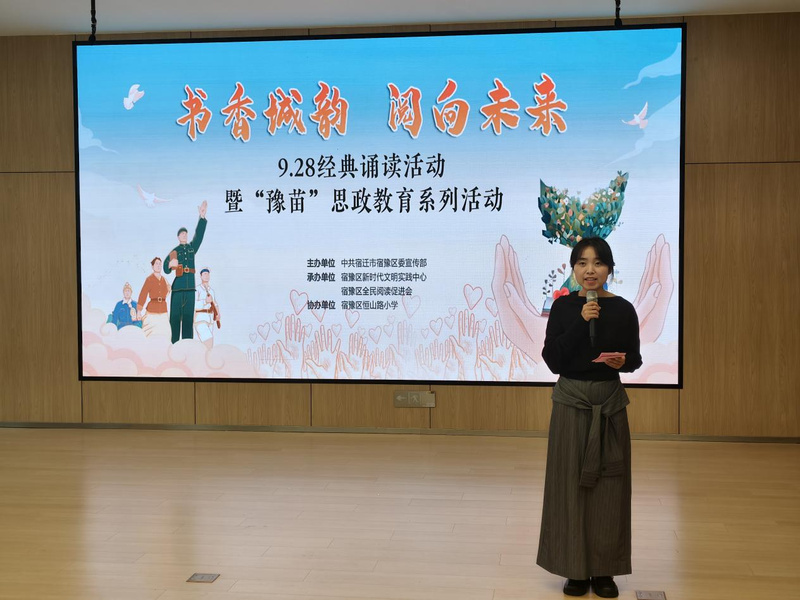 本次活动通过创新形式,将经典诵读、历史教育、“豫苗”思政课堂有机融合,有效激发了青少年的爱国热情和阅读兴趣,对引导他们铭记历史、珍惜当下、立志成才具有重要意义。宿豫区将持续以“书香宿豫”建设为抓手,推动全民阅读工作高质量发展,持续做优“豫苗”品牌,创新开展更多寓教于乐、润物无声的思政教育活动,为培养担当民族复兴大任的时代新人贡献力量。(靳雅宁)