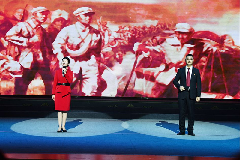 活动现场,沭阳县第三实验小学师生以音诗舞《荷韵》开场,将诵读、吟唱与舞蹈巧妙融合,带领观众走进古典诗词的意境长廊。随后,情景诵读《为有牺牲多壮志——红色家书选读》以夏明翰、赵一曼、黄继光、方志敏的字句为脉络,让观众聆听那份跨越时空的坚定与深情。组诗朗诵《淮海烽火》聚焦沭阳本地红色故事,重温马厂造、张圩根据地、汤曙红等沭阳本地的红色故事,让观众感受到这片土地上的热血与荣光。