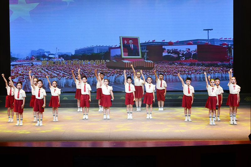 活动尾声,三位小学生深情朗诵《祖国,一首唱不完的恋歌》,用稚嫩嗓音传递对祖国的炽热爱意。原创歌曲《万水朝东》将沭阳的文化底蕴与时代脉搏融入歌声与舞姿,为活动画上圆满句号。
