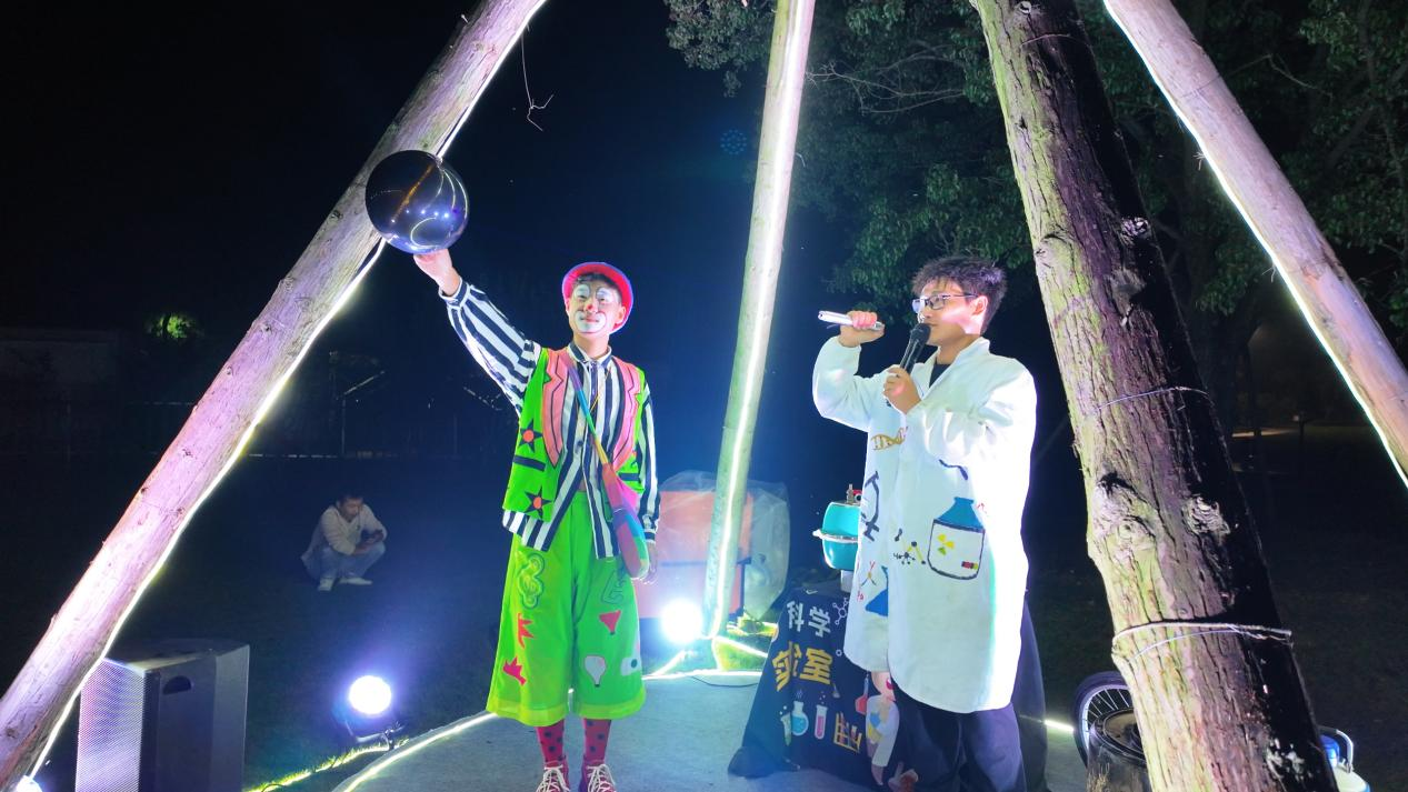 当夜幕降临,三台山的精彩并未落幕。为提升游客入住体验,景区在国庆期间精心准备了“海棠唱晚”活动,海棠湾草坪音乐夜现场,柔和灯光下,乐队弹唱民谣,宾客围坐草坪,微风携花香拂面,惬意非凡;物理实验秀环节,干冰遇水瞬间化作“白雾仙境”,魔术表演更是引得现场掌声不断。