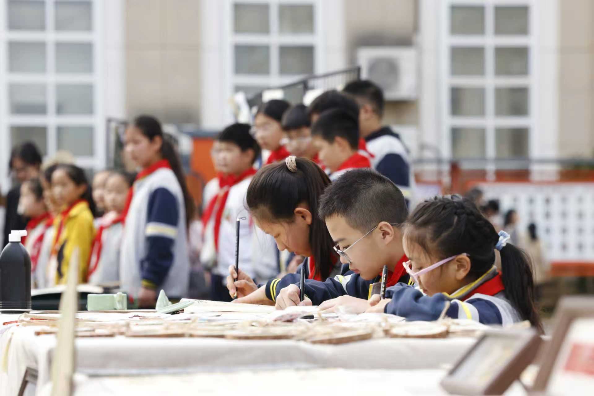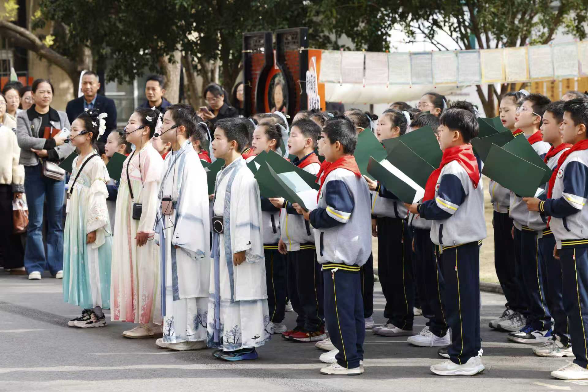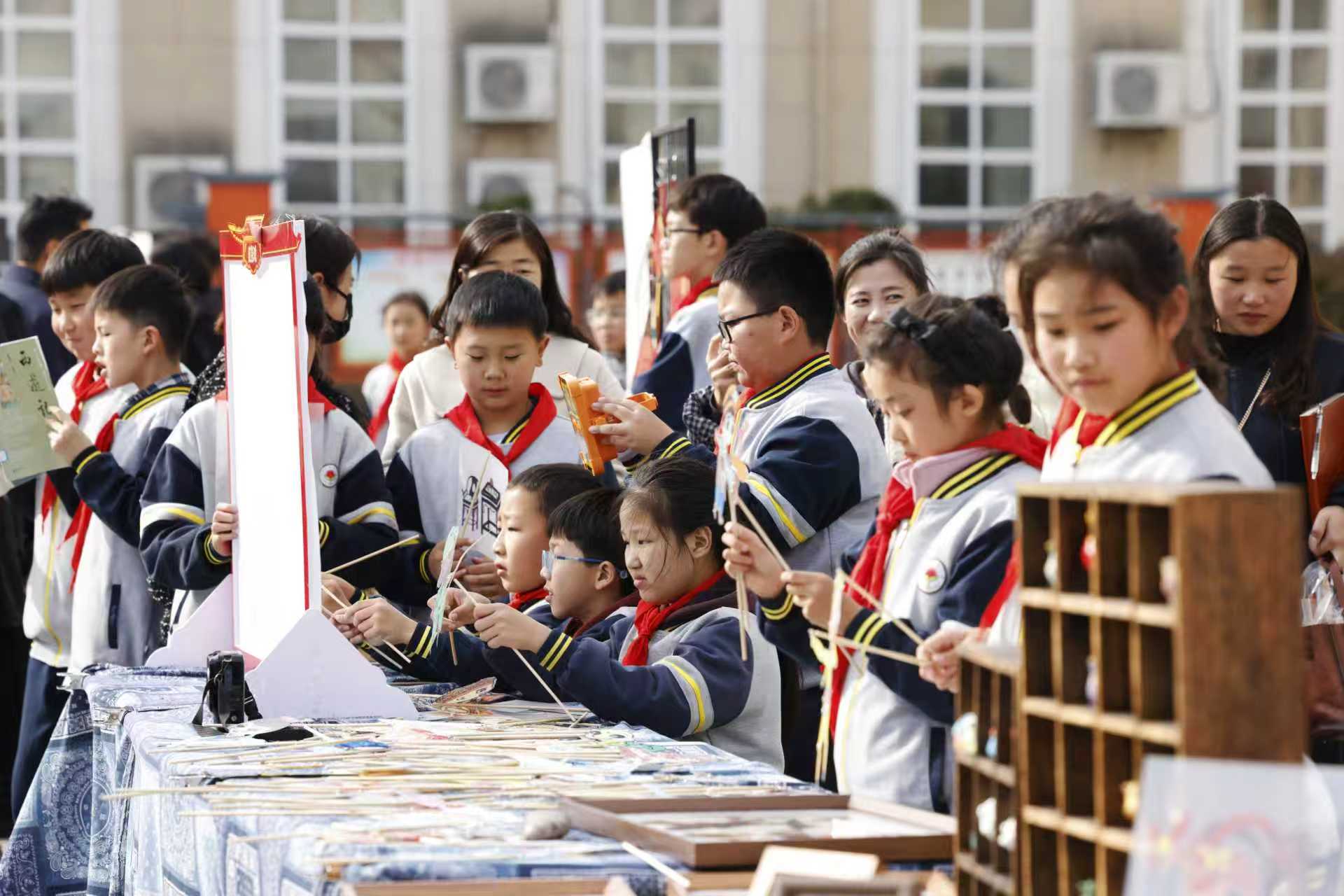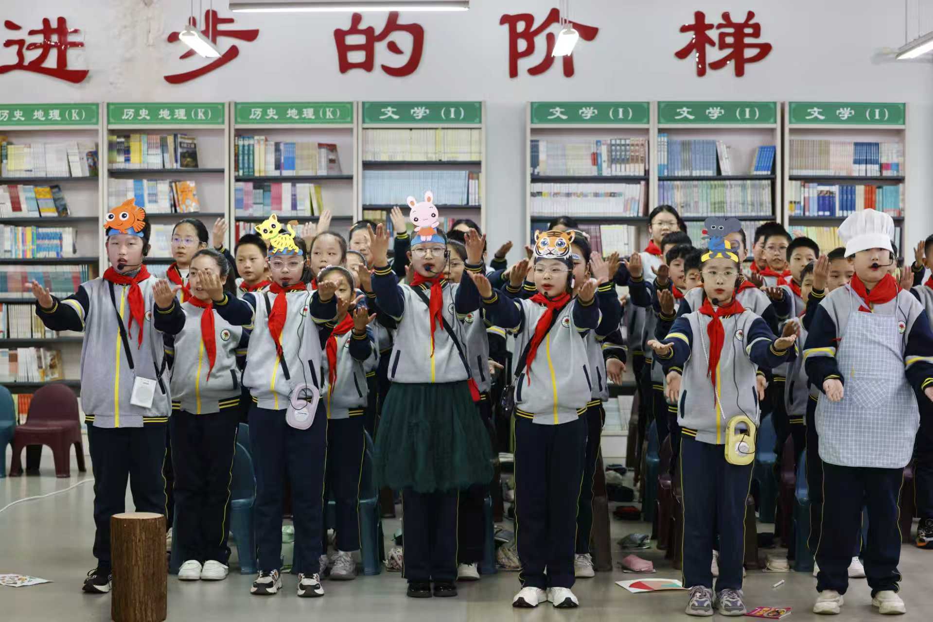 学校将二十四节气与传统节日融入阅读课程,开展“春节文化大探秘”“月满中秋”等主题阅读活动,引导学生制作节气头饰、诵读经典诗词、体验传统习俗,追求文化根脉,汲取阅读力量。“学生在主题阅读活动中,高年级学生以班为单位,都制作了读书卡、手抄报,组织讲故事比赛等,把阅读成果生动形象地展示出来,学生们自然而然进入‘悦读’境界。”王静说。