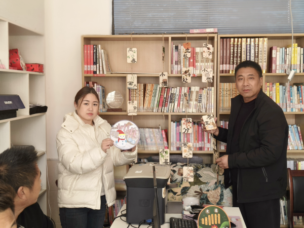 活动设置了“巧手制冬”环节。在志愿者的引导下,村民动手制作精美的节气书签,他们用心挑选材料,将书籍中对冬日景物的精彩描写通过手工的形式展现出来。随后,将制作好的书签用编织绳挂在书架上,为书屋增添一份独特的冬日韵味。同时,还将一些手工作品制作成了展示盘,把有关节气内容的贴纸贴在盘子上,组成了一幅幅精美的画面。当一个个手工作品完成时,大家的脸上洋溢着幸福的笑容,那笑容里既有对自己作品的满意,也有对传统文化的热爱与传承。