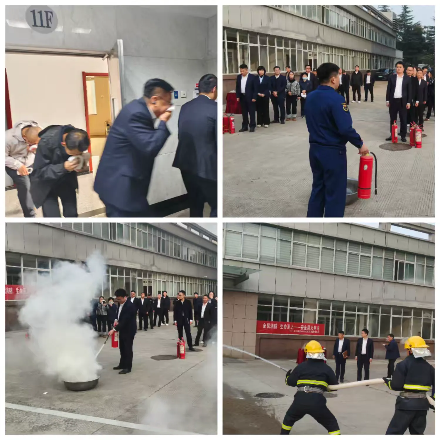 培训结束后,全体参会人员按照高层建筑火灾应急逃生预案,模拟火灾场景,听从统一指挥,严格按照逃生路线快速撤离,整个疏散过程安全有序、协同高效,充分检验了培训成效与应急处置能力。灭火演练现场,谭队长细致讲解了“检查有效期、拔除保险栓、对准火焰根部喷射”的规范流程及注意事项,让参会人员听得懂、记在心、会使用。