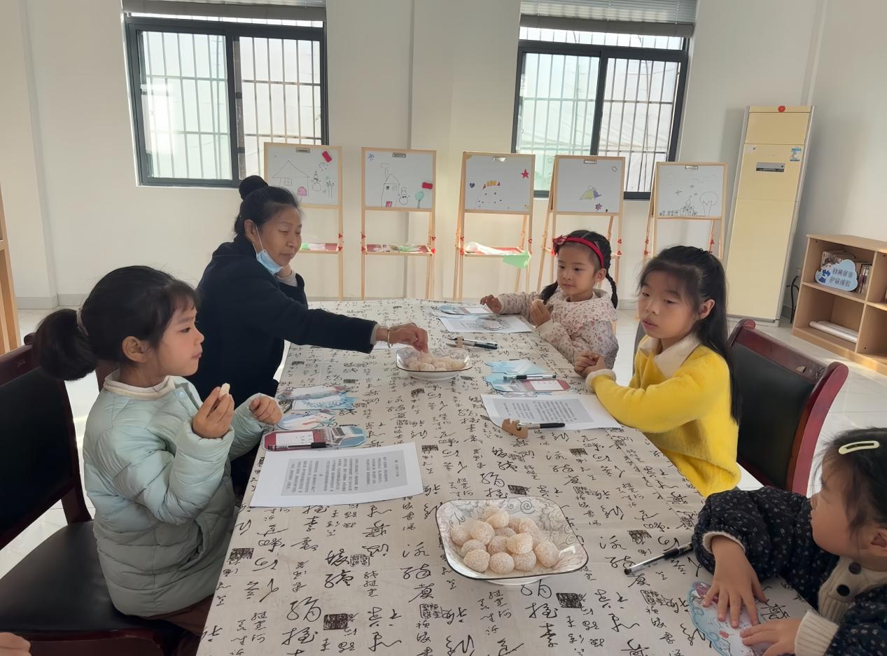 活动结束后,志愿者端上软糯的糍粑,大家围坐一圈,迫不及待地来上一口。糍粑入口,米香四溢。孩子们分享着彼此的作品,在协作中学会传递温暖,糍粑的圆润,亦如童心的纯真,映照出“团圆”的深意。