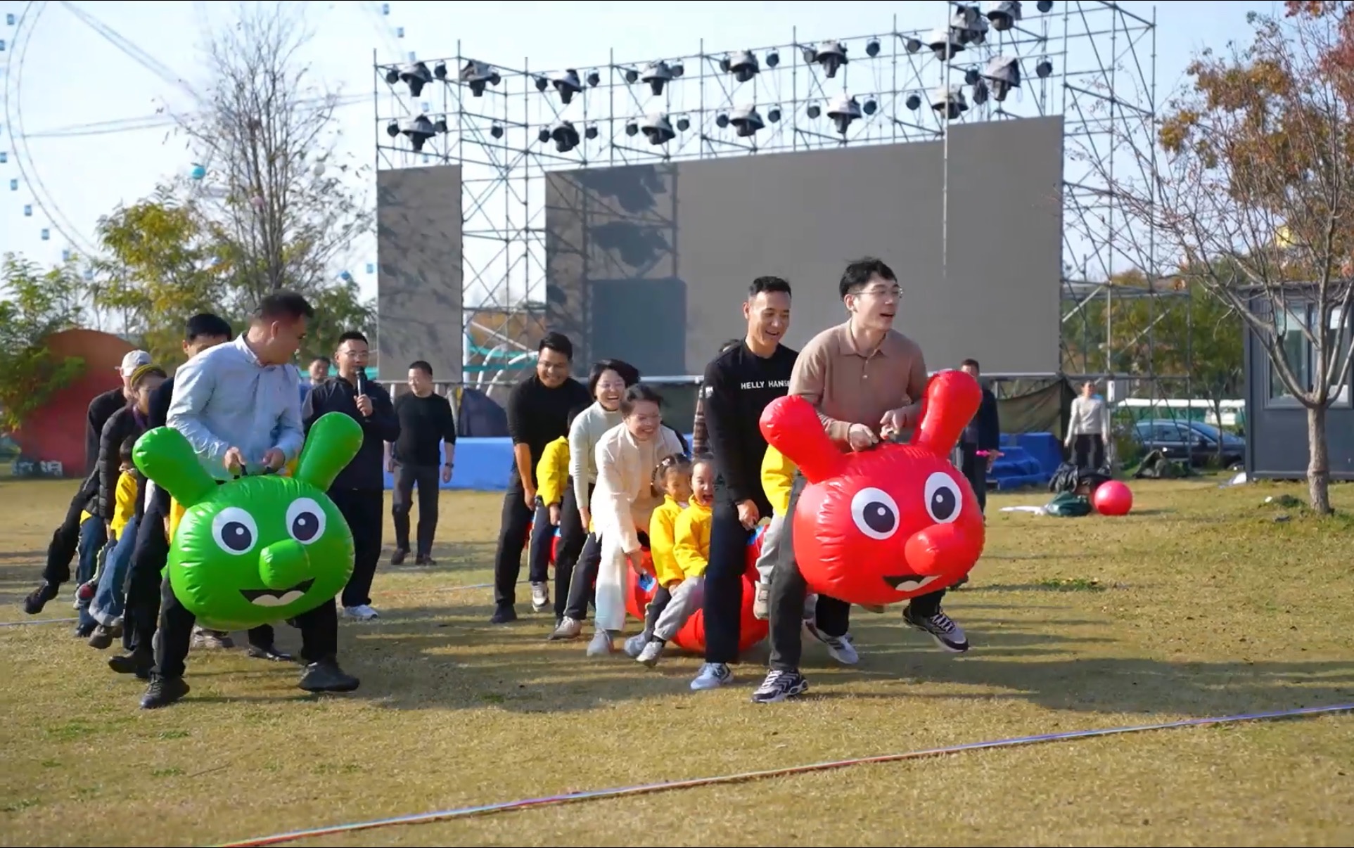 随后,全体人员转场至骆马湖沐晨太空舱度假营地。孩子们在老师的带领下,伴着欢快的旋律,跳起了充满活力的舞蹈《孩子的天空》。紧接着,“欢乐毛毛虫”“同心背夹球”“快乐袋鼠跳”等亲子游戏轮番上演,家长与孩子默契配合,现场充满欢声笑语。