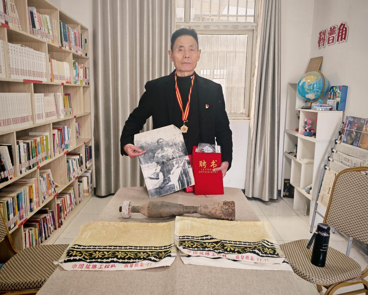 活动开始,退伍老兵杨步局带来了自己珍藏多年的革命文物:一张张珍贵的荣誉证书、一条洗得发白的旧枕巾、一个破旧的炮弹壳、一枚枚泛黄的照片静静陈列在展台上。这些看似普通的物件,承载着滚烫的红色记忆。它们是时代的烙印,是先辈们的奋斗精神与家国情怀的凝聚,更承载着一位老党员对家国的赤诚情怀。