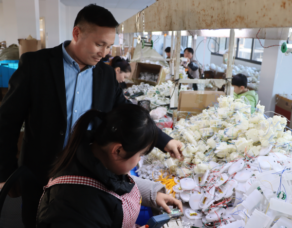 在发展过程中,他始终秉持“绿色环保、品质保证”的经营理念,从胶件、油脂、胶棒到锡丝,所有原材料全部采购环保产品,用实际行动践行绿色发展理念。同时,他积极践行魏营特色“飞地模式”,稳步拓展行业市场,产品已成功覆盖南京、苏州、深圳等多个城市。凭借稳定的生产体系,年产智能玩具100余万个,年销售额突破900万元,年利润可达100万元,经营效益节节攀升。