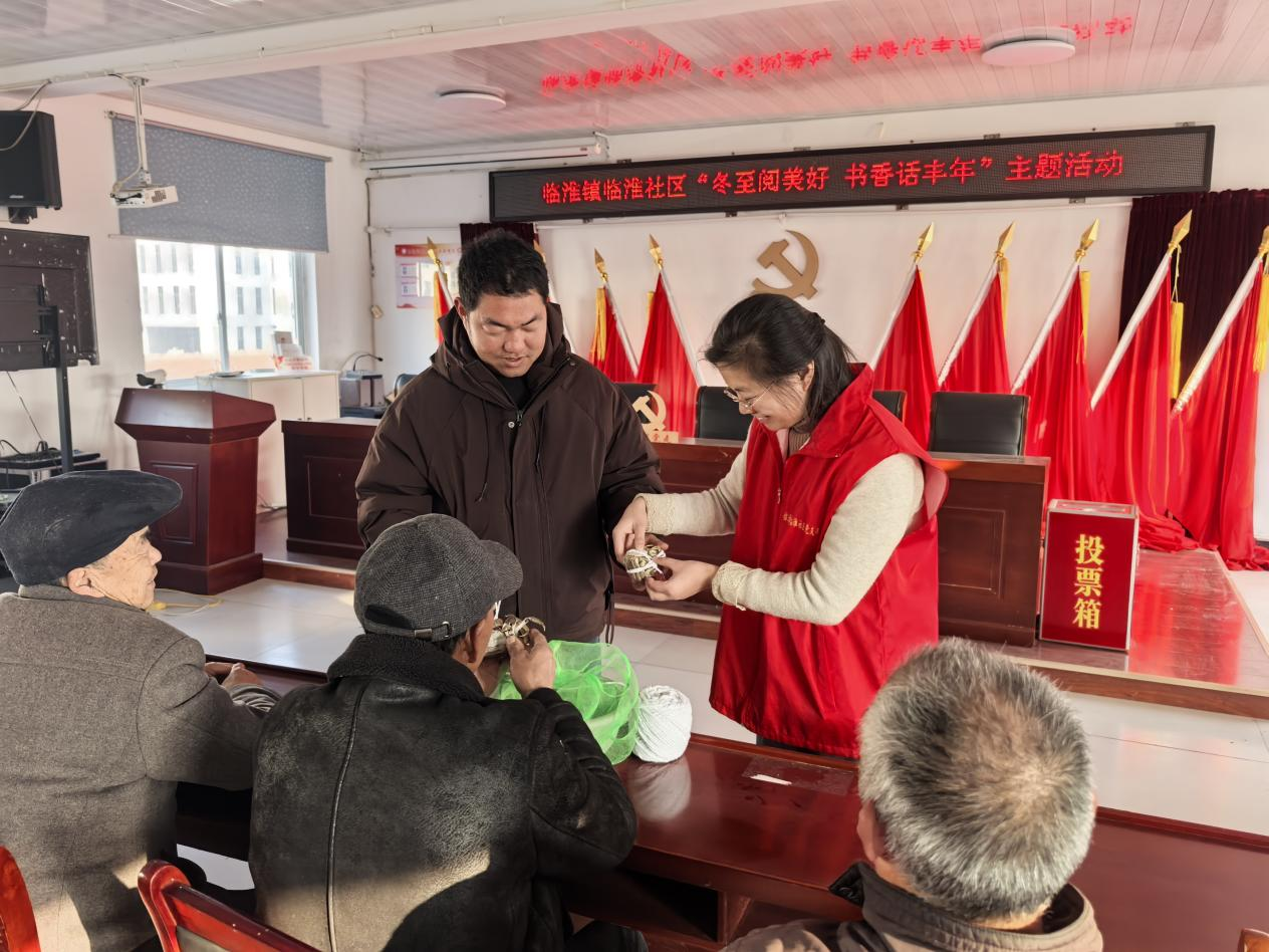 冬至阅美好,书香话丰年。临淮社区以“冬至阅美好 书香话丰年”为主题,组织居民走进农家书屋,共读传统文化典籍,集体朗诵《辛酉冬至》等经典诗篇,在文字中感受节气文化,联结古今情愫。现场还通过科普视频,讲解冬至物候特征、南北习俗差异,并结合时令普及冬季养生知识。活动特别设置了乡村特色展示环节。志愿者现场演示娴熟的螃蟹捆扎技艺,既展现本地产业特色,寓意丰收兴旺,也巧妙地将阅读文化与乡村发展愿景相结合,引导群众在书香中共同展望产业振兴、生活富裕的美好蓝图。